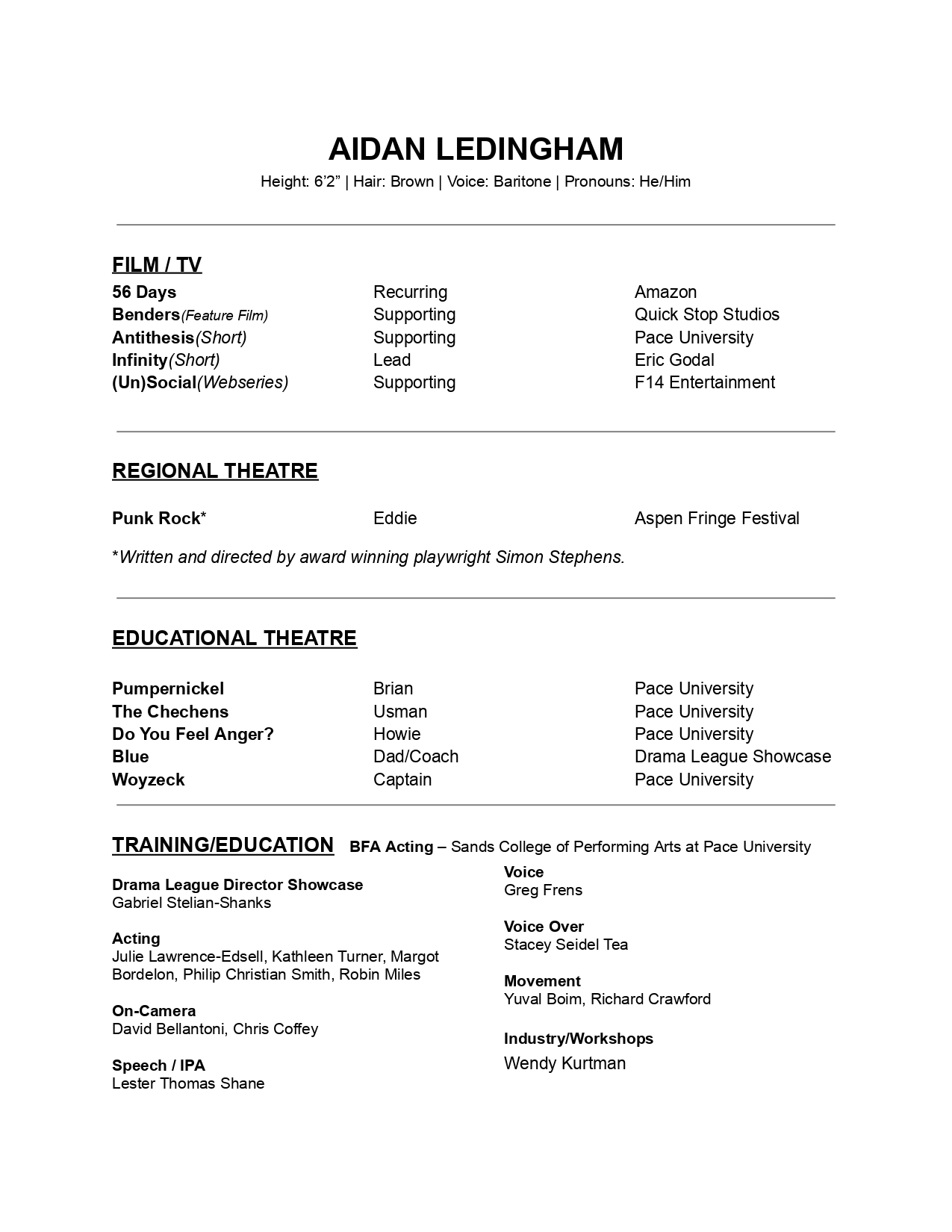 Hi, my name is Aidan Ledingham. I'm an old soul who passionately feels for the things and people around me. I was raised in Aspen Colorado and San Fransisco. Experiencing both the Rocky Mountains and the Pacific Ocean. The Skier and Surfer combination. I grew up pursuing theater and dance but took a detour into sports through Middle School and High School. I was varsity in both football and basketball all four years, captain in both sports my senior year, while also being named athlete of the year. Eventually, I came to terms with the fact that I wasn't going to be a D1 athlete and started exploring my creative side again. I went from thinking about attending a business school to reimagining the possibilities of my childhood dreams. . An ember of childhood dreams had ignited back into a flame. I was going to be a storyteller.